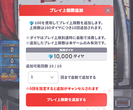 プレイ上限に到達した場合は、ダイヤを消費することにより